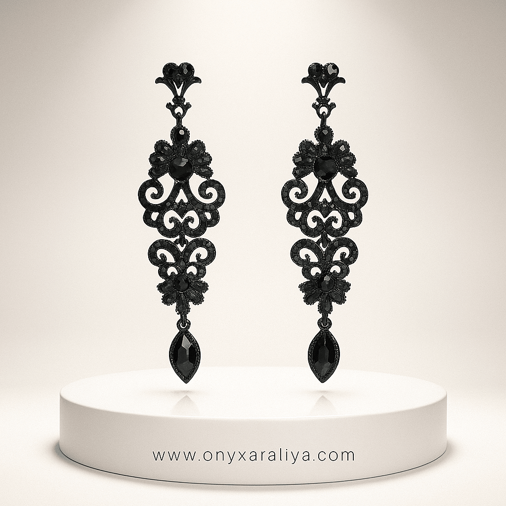 Be the first to review ““Black Empress Filigree” Earrings”