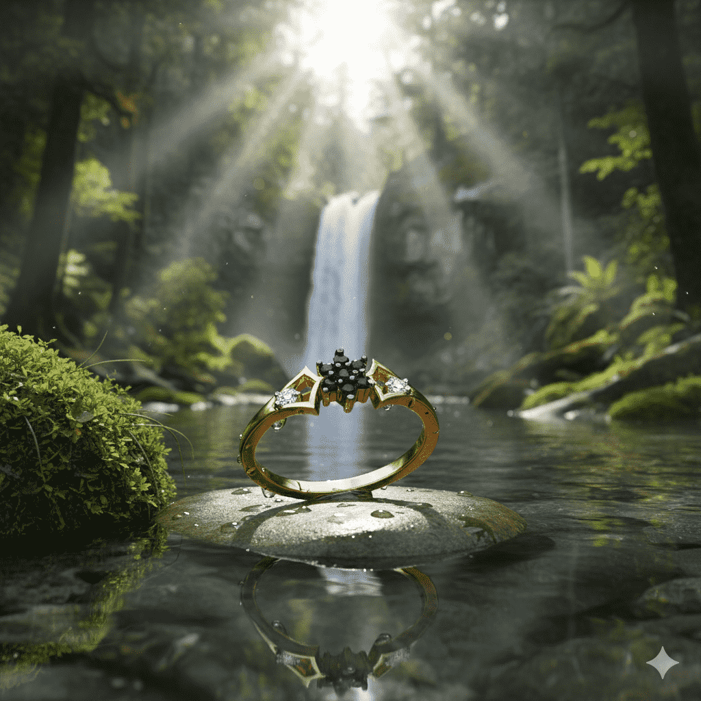 • Gemstones: Black Onyx round cuts (center cluster & shoulder accents)