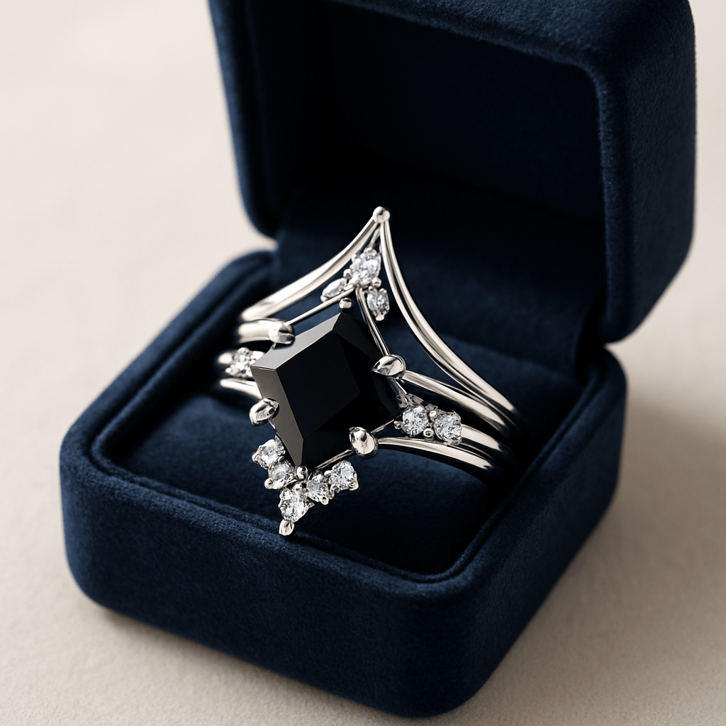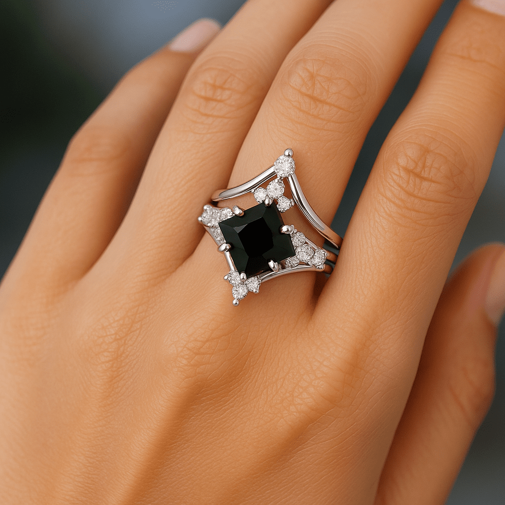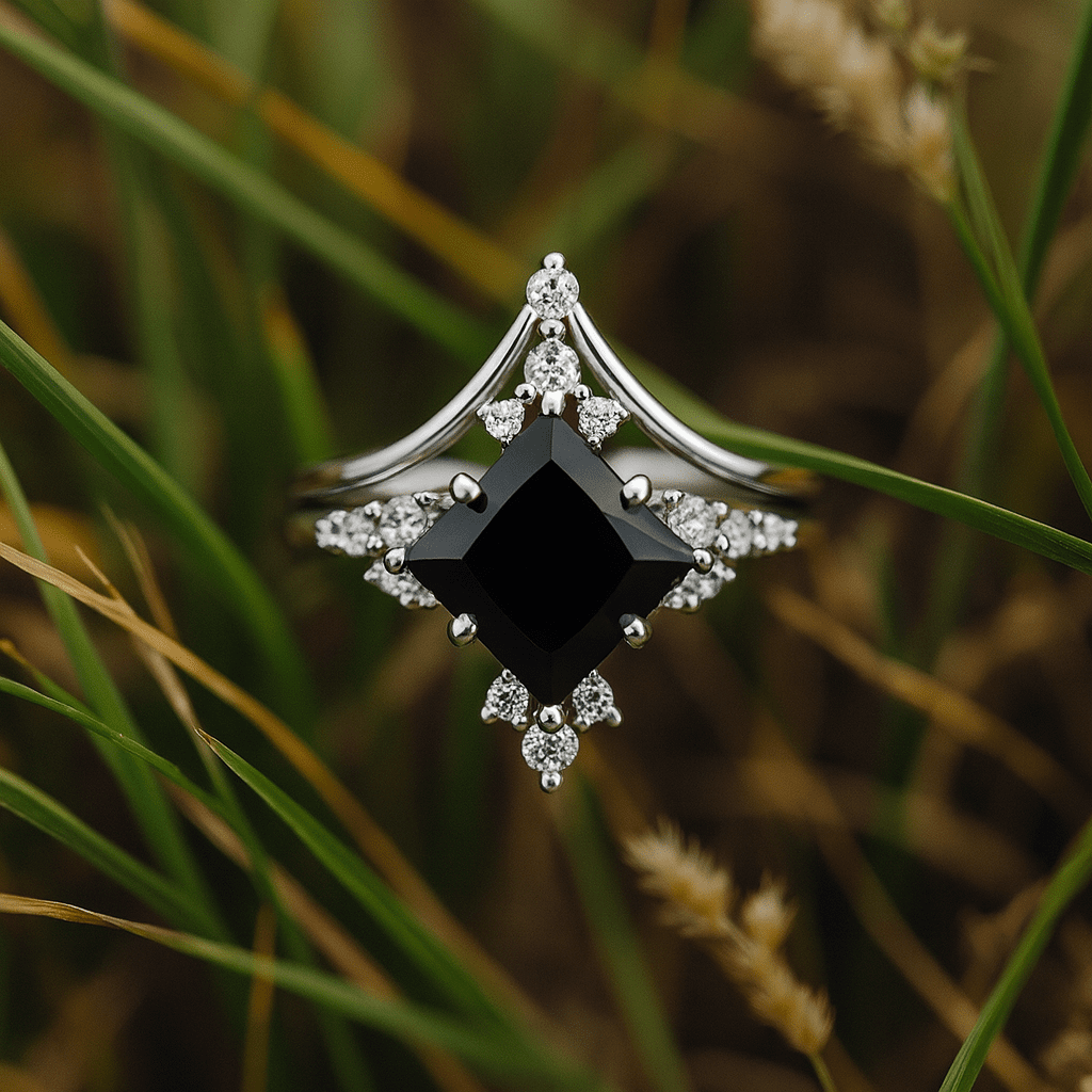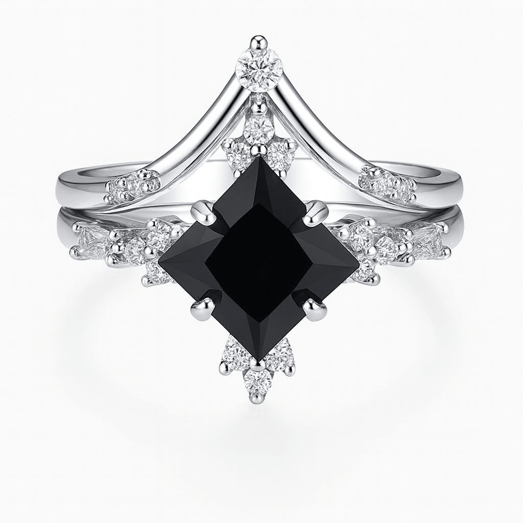 • Center: Princess-cut Black Onyx