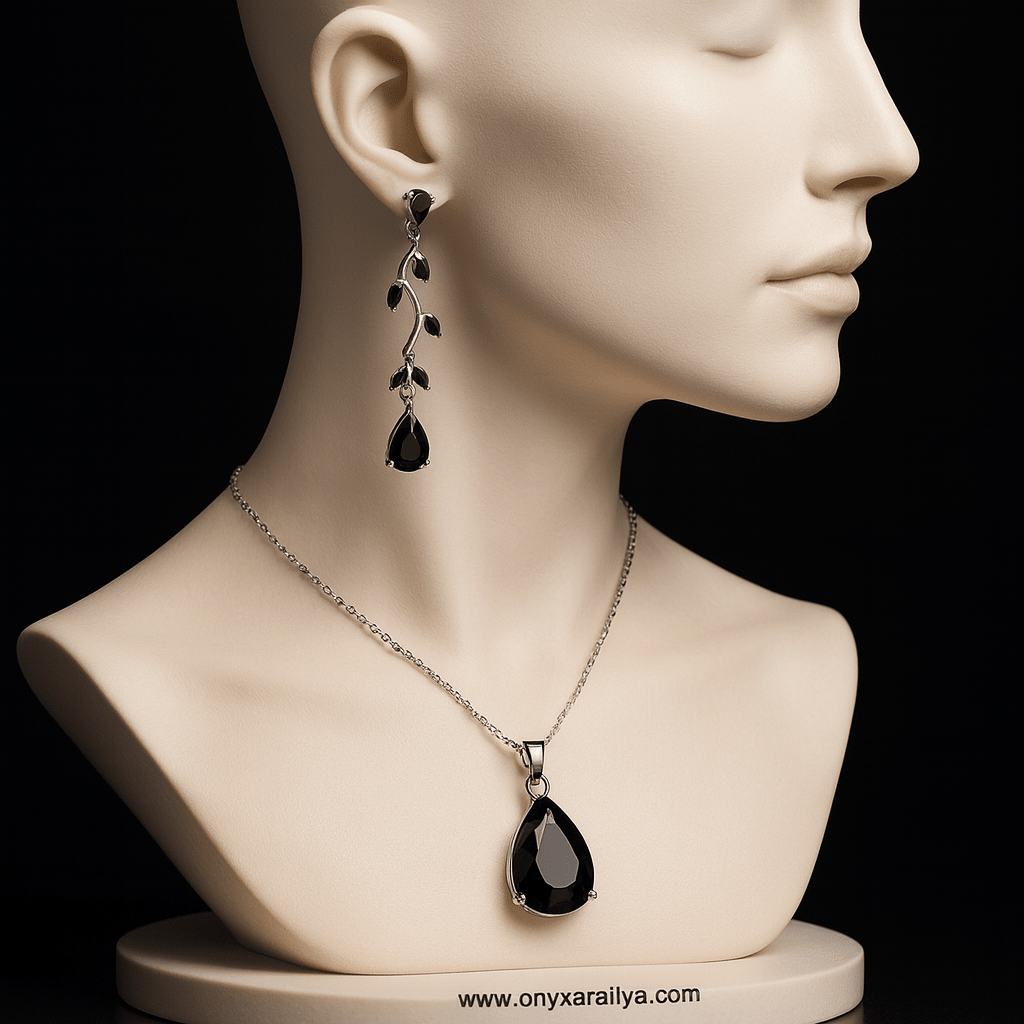 Onyx Araliya — Elegant Teardrop Black Onyx Necklace & Earrings Set