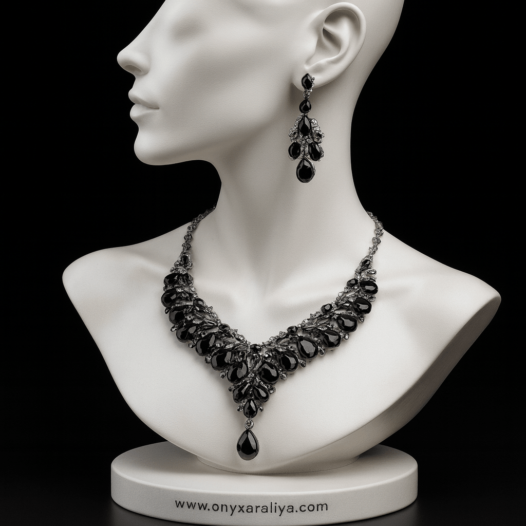 Onyx Araliya — Grand Teardrop Statement Necklace & Chandelier Earrings (Set)
