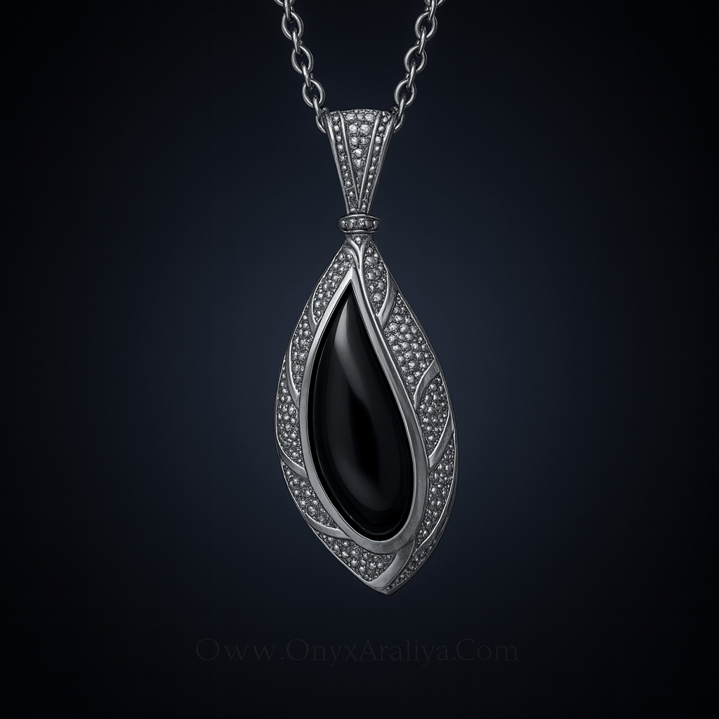 Onyx Araliya – The Celestial Noir Leaf Pendant