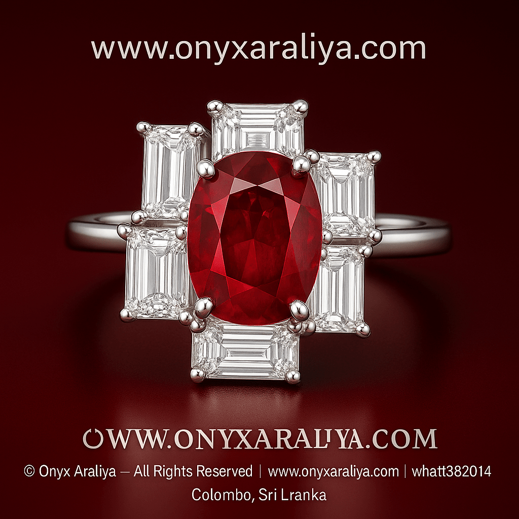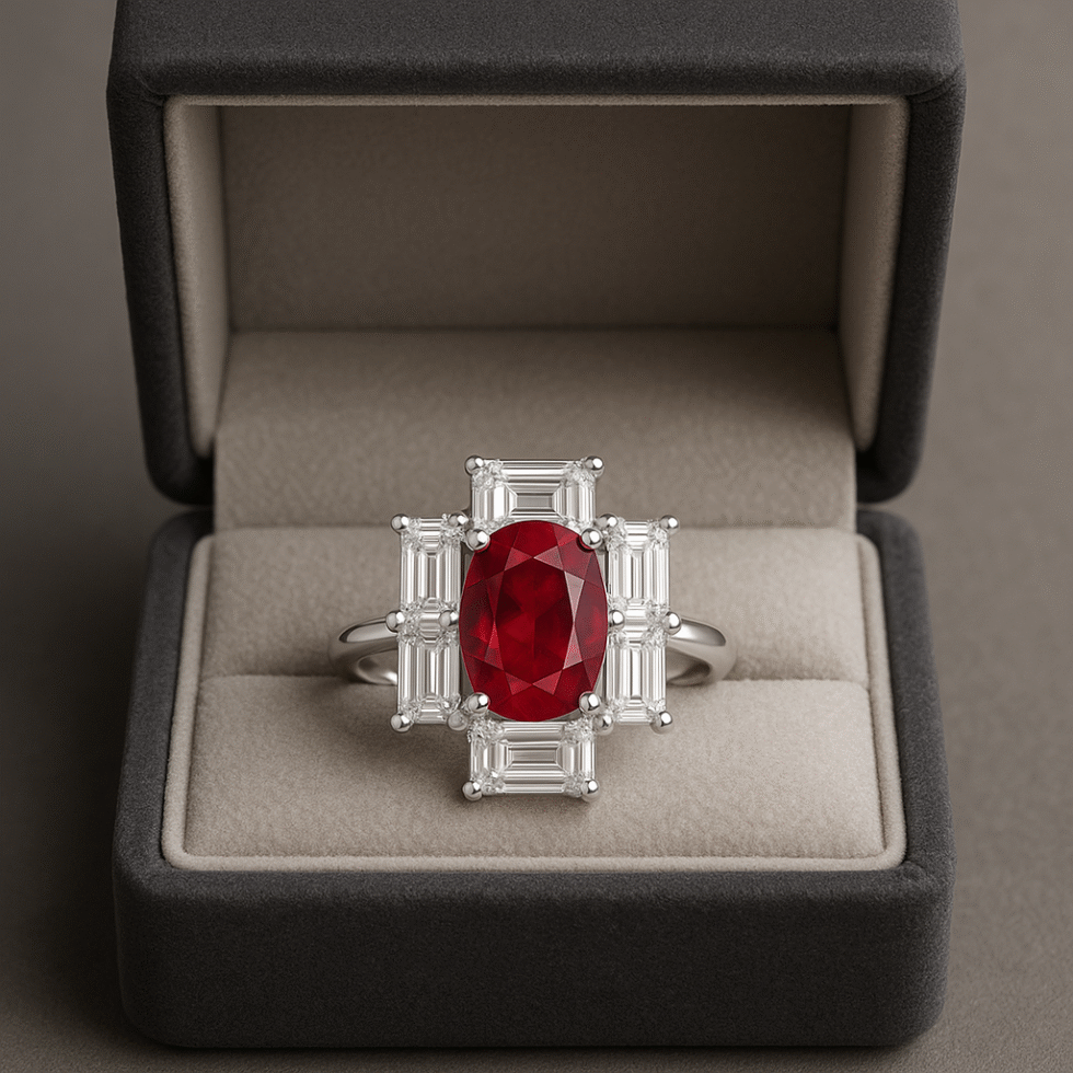 • Center: Oval red gemstone (Ruby / Red Spinel / Red Topaz / premium CZ available)