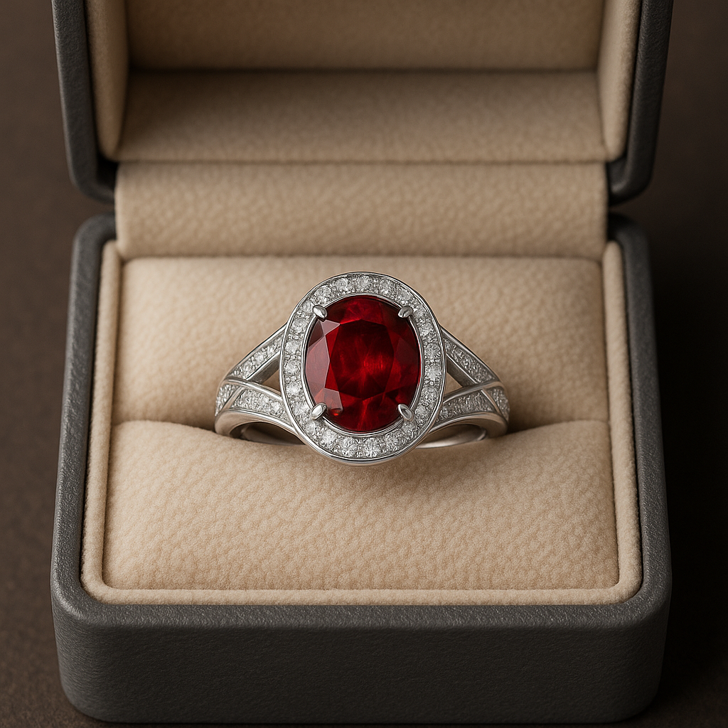• Center: Oval red gemstone (Ruby / Red Spinel / Red Topaz / premium CZ options)
