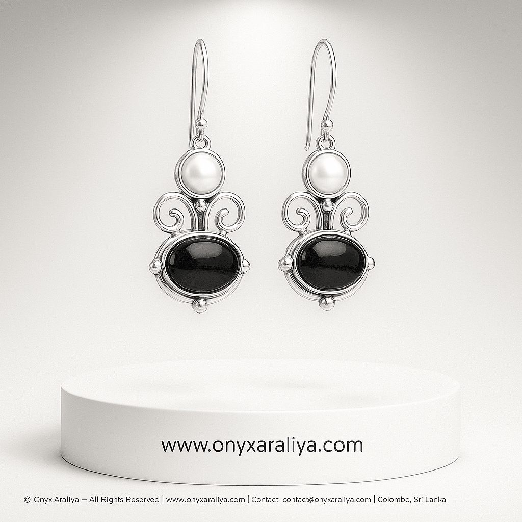 Where classic beauty meets artisan craftsmanship — the Regal Pearl & Onyx Scroll Earrings are designed for the woman who appreciates elegance with character.